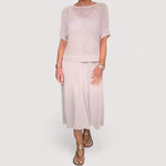 • Besondere Materialkombination: Geniessen Sie das raffinierte Zusammenspiel aus strukturiertem Oberteil und fliessendem Rock.