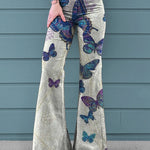 Fionara | Schmetterlings-Glöckchen-Hosen bringen ein mutiges Statement in Ihre Garderobe. Mit einer hohen Taille, weitem Bein und einem lebhaften Schmetterlingsdruck fangen diese Hosen ein Gefühl von Freiheit und Individualität ein. Perfekt für Festivals, kreative Ausflüge oder einfach um Farbe in Ihr Alltagsoutfit zu bringen.