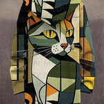 Frederica | Geometrischer Katzen-Hoodie verwandelt ein gemütliches Essential in ein tragbares Kunstwerk. Mit seinem auffälligen, kubistisch inspirierten Katzenmotiv in erdigen Grüntönen, Orangen und Gelb ist er perfekt für Frauen, die einzigartige Muster und einen markanten Stil lieben. Ideal für lässige Tage, entspannte Abende oder kreative Ausflüge bringt dieser Hoodie sowohl Wärme als auch Individualität.
