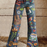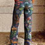 Fresina | Frieden & Liebe Schlaghosen fangen die ikonische Hippie-Vibe mit bunten Drucken von Friedenszeichen, Blumen, Regenbögen und Gitarren ein. Der hohe Taillenschnitt und der weite Schlag sorgen für schmeichelhaften Komfort und machen sie perfekt für Festivals, entspannte Tage oder wann immer Sie Positivität und freien Geist ausstrahlen möchten.