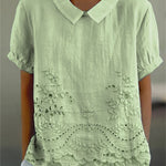 Lily | Blumenstickerei-Shirt strahlt zeitlose Eleganz mit seinem sanften rosa Stoff und der zarten Blumenstickerei am Saum aus. Perfekt für einen Frühlingsnachmittag oder einen lässigen Abend, kombiniert dieses Shirt Komfort und Raffinesse. Die gestickten Details verleihen einen femininen Touch und machen es zu einer charmanten Ergänzung jeder Garderobe.