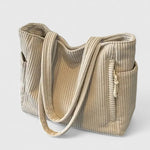 Verleihen Sie Ihrem Alltagslook mit dieser gerippten Tote Bag, die trendige Kordeldetails aufweist – wo Funktion und Mode mühelos aufeinandertreffen.