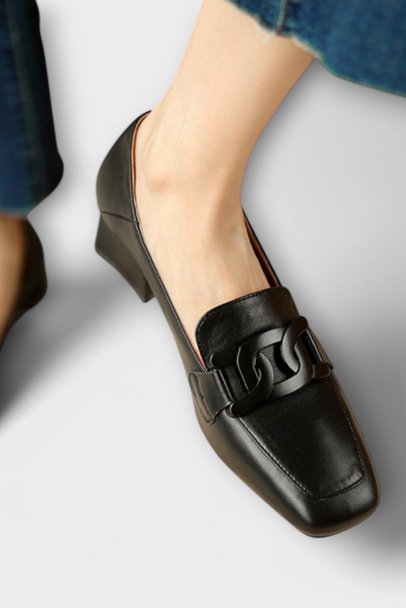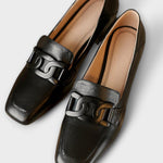 Der Monica Loafer ist der Inbegriff maßgeschneiderter Eleganz. Mit seiner schlanken, quadratischen Spitze, dem polierten Finish und dem auffälligen Kettendetail kombiniert Monica die Anmut eines Pumps mit dem Komfort eines flachen Schuhs. Egal, ob Sie sich für ein Meeting schick machen oder einem lässigen Outfit Struktur verleihen möchten, Monica bringt Selbstbewusstsein und Raffinesse in jeden Schritt. Mit ihrem unterstützenden, niedrigen Blockabsatz und der zeitlosen Silhouette wechselt dieser Loafer mühelos vom Tag zur Nacht. Raffiniert und dennoch tragbar, ist Monica ein unverzichtbares Kleidungsstück für Frauen, die moderne Klassiker mit einem Twist schätzen.