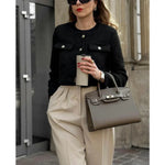Die Tasche Kensington strahlt zeitlose Eleganz aus und ist sorgfältig aus hochwertigem veganem Leder gefertigt, bereichert mit einem raffinierten Drehverschluss. Entworfen mit der modernen Frau im Hinterkopf, hält das geräumige Hauptfach notwendige Gegenstände perfekt organisiert, während der abnehmbare und verstellbare Riemen vielseitige Stiloptionen bietet – tragen Sie sie als Handtasche, über der Schulter oder am Arm.