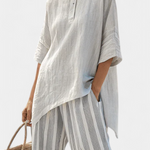 Atme die Küste ein, spüre die Sonne und gleite in mühelose Eleganz. Jedes Stück ist aus atmungsaktiven, natürlichen Stoffen gefertigt, die sich mit dir bewegen – für ein kühles, selbstbewusstes und stilvolles Gefühl von Sonnenaufgang bis Sonnenuntergang.