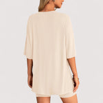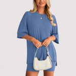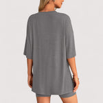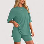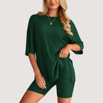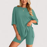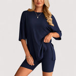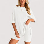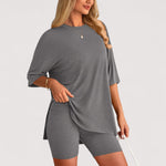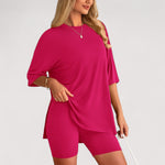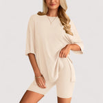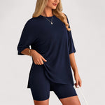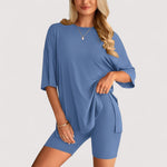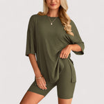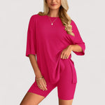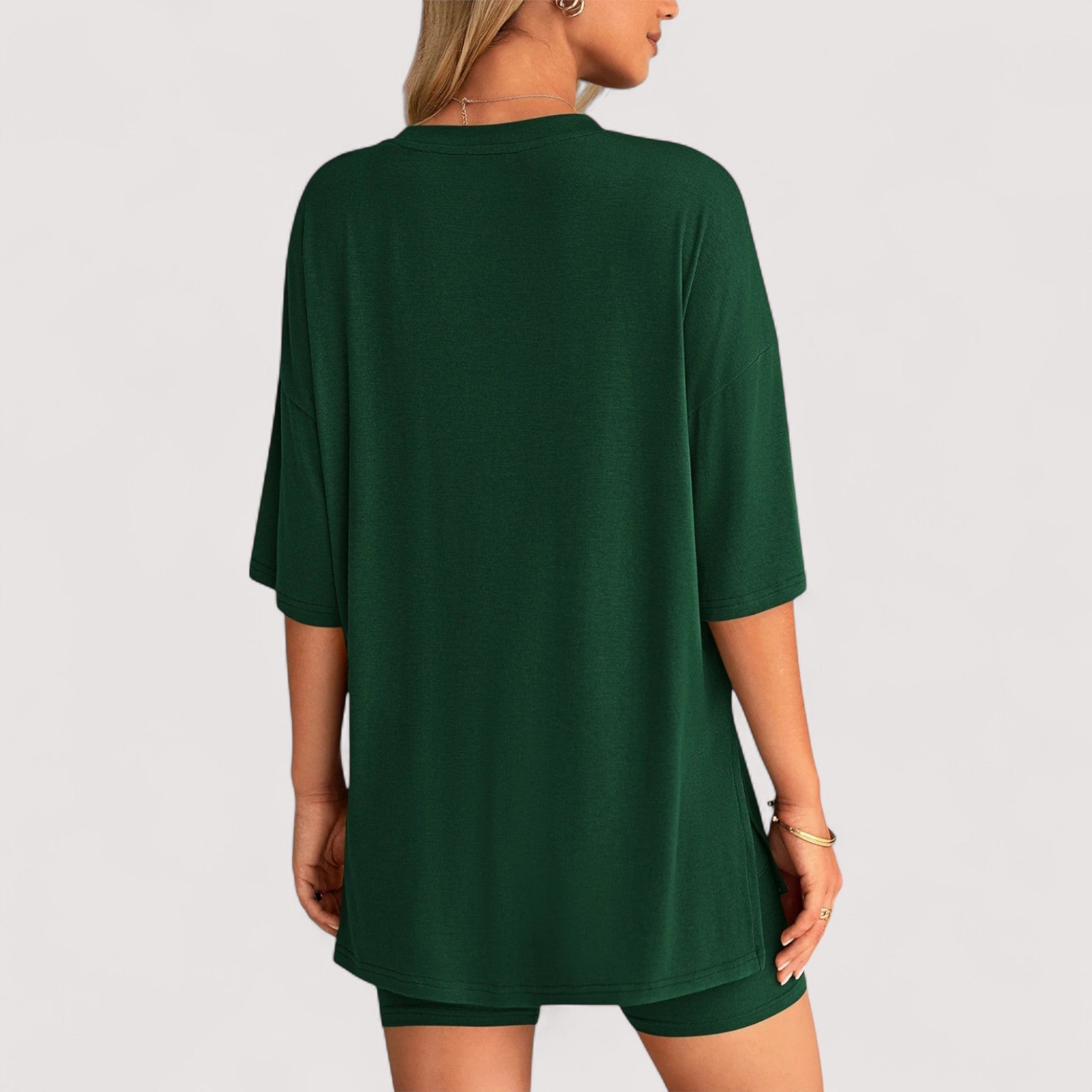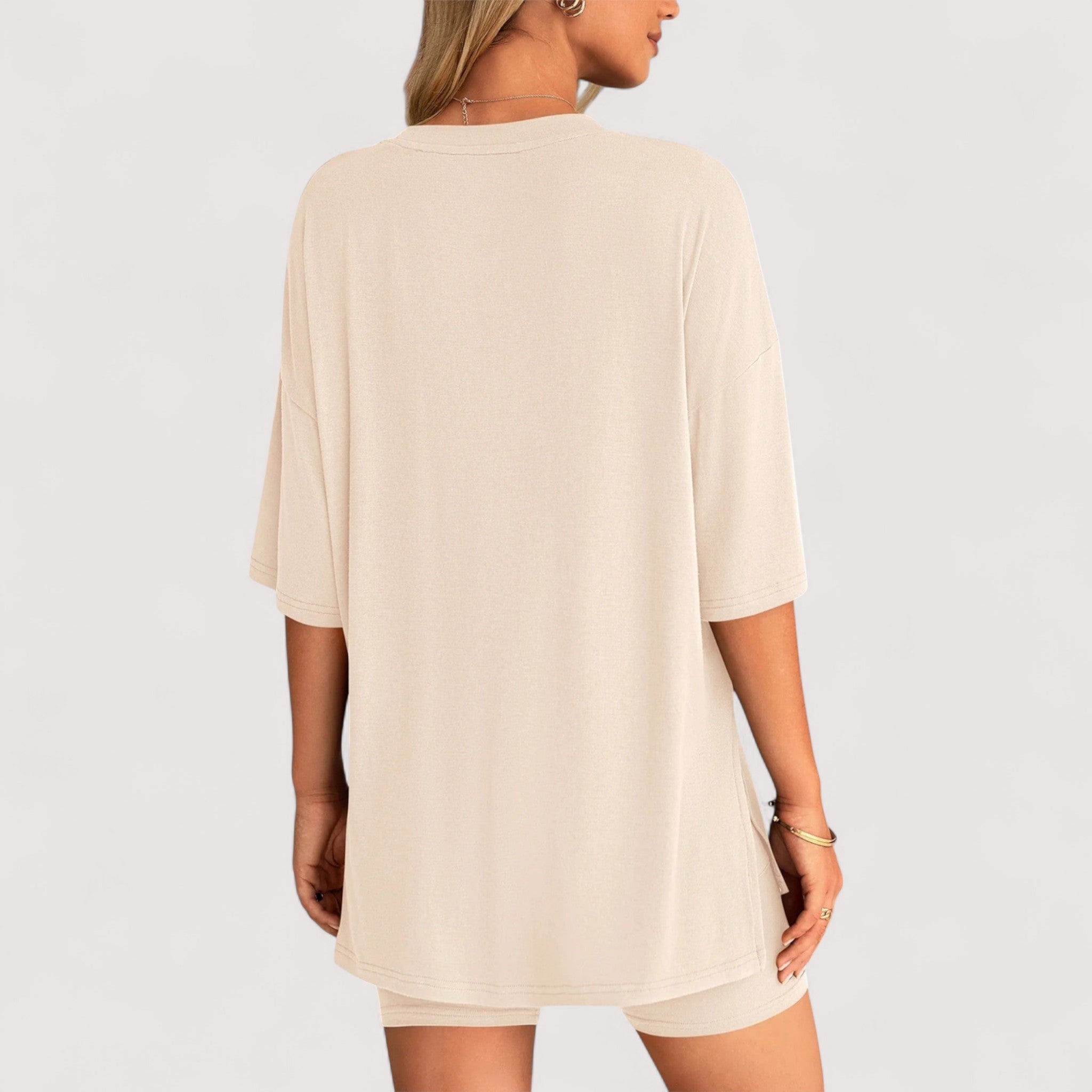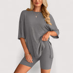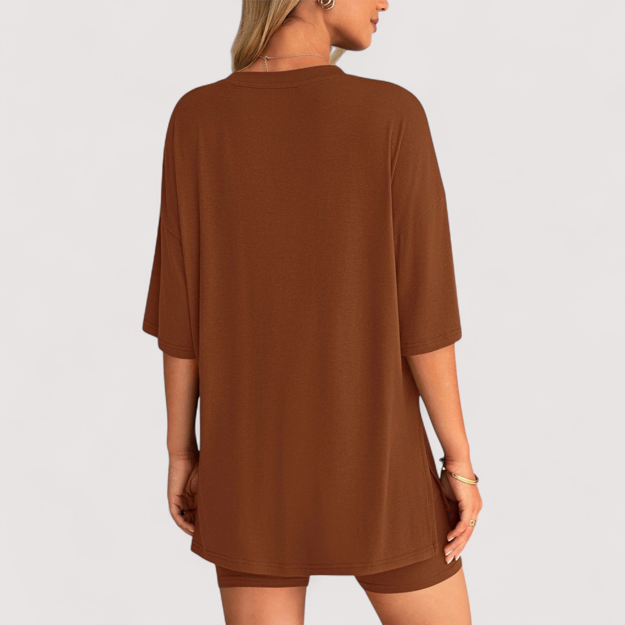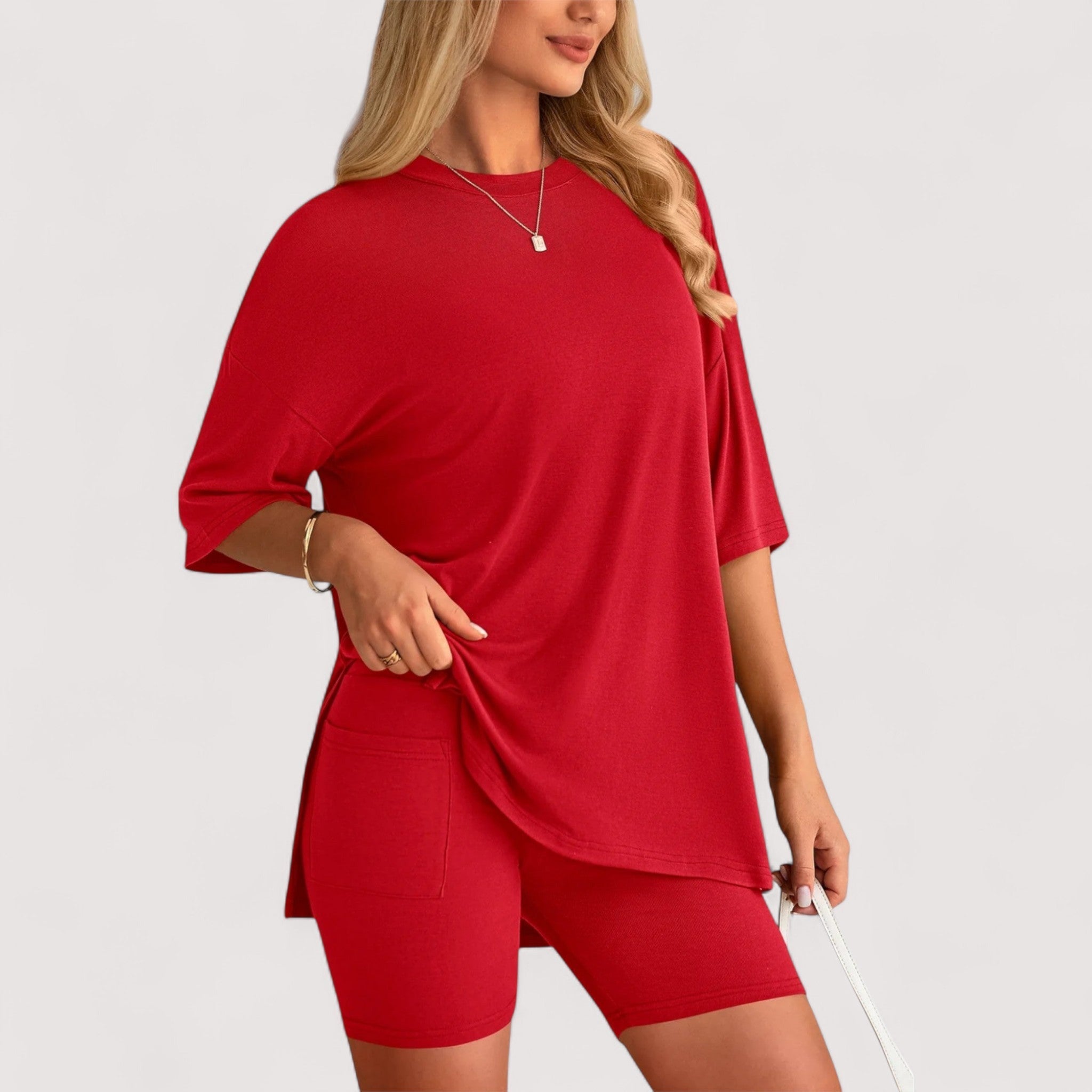 • Komfort & Freiheit: Lockeres T-Shirt und hoch taillierte Shorts für bequeme Passform und unbegrenzte Bewegungsfreiheit.