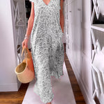 Véronique | Langes V-Ausschnitt Kleid mit kurzen Ärmeln im Leopardenmuster